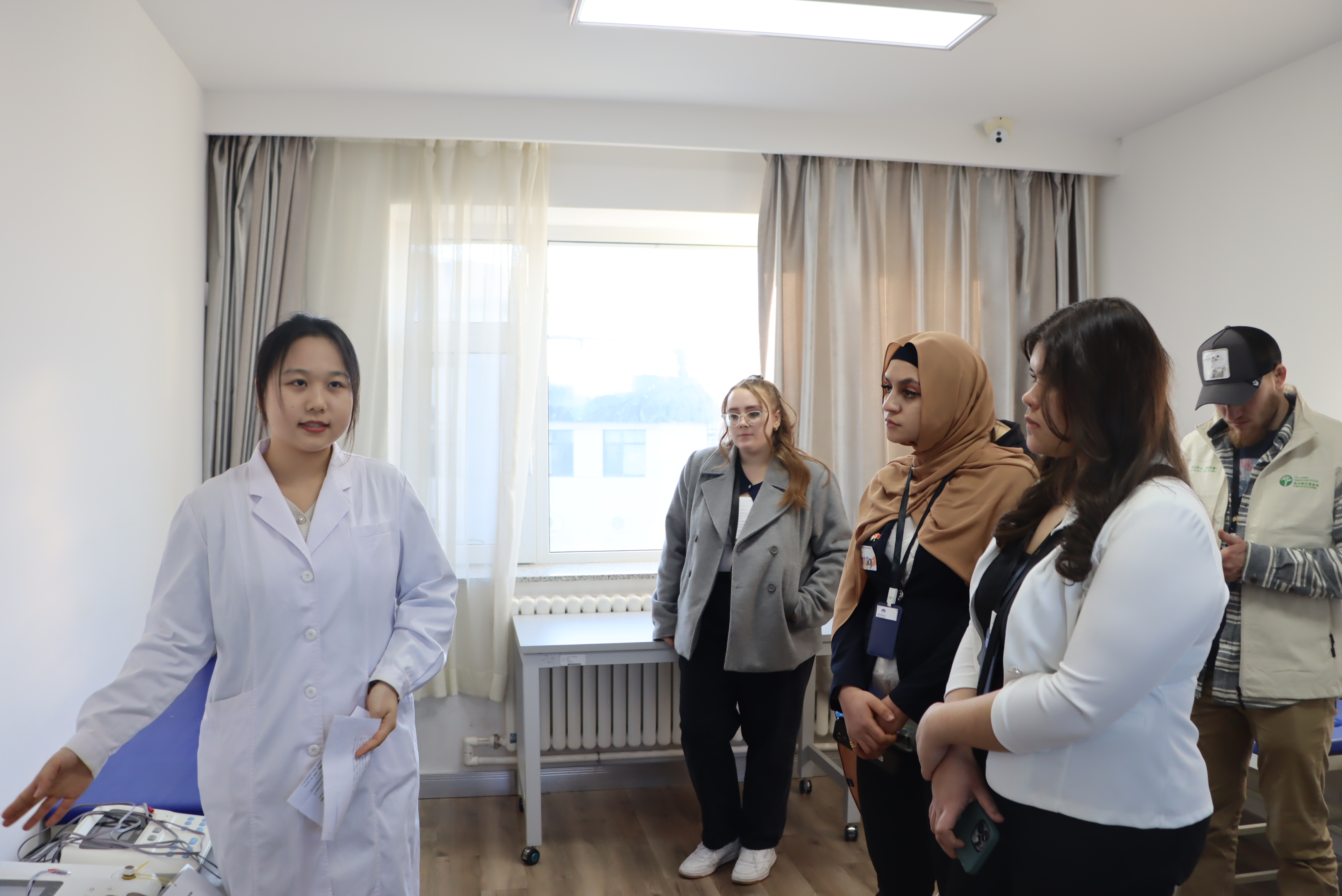 访华团一行首先参观了护理学实验教学中心内科、外科、妇科、儿科实验室,随后来到康复治疗学实验教学中心参观了作业治疗、物理治疗实验室。访华团成员对实验中心各种仪器设备非常感兴趣,并在参观期间与学院师生进行友好互动。
