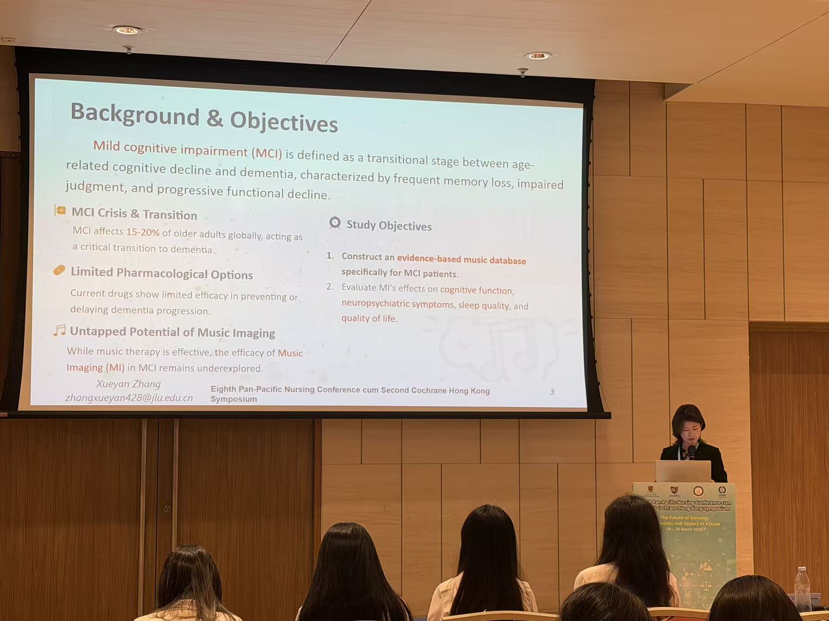 张雪妍副教授、张慧晶教师在分会场针对音乐认知疗法、脑卒中患者社会参与研究进行口头汇报。2名研究生同学也在分会场进行口头发言。