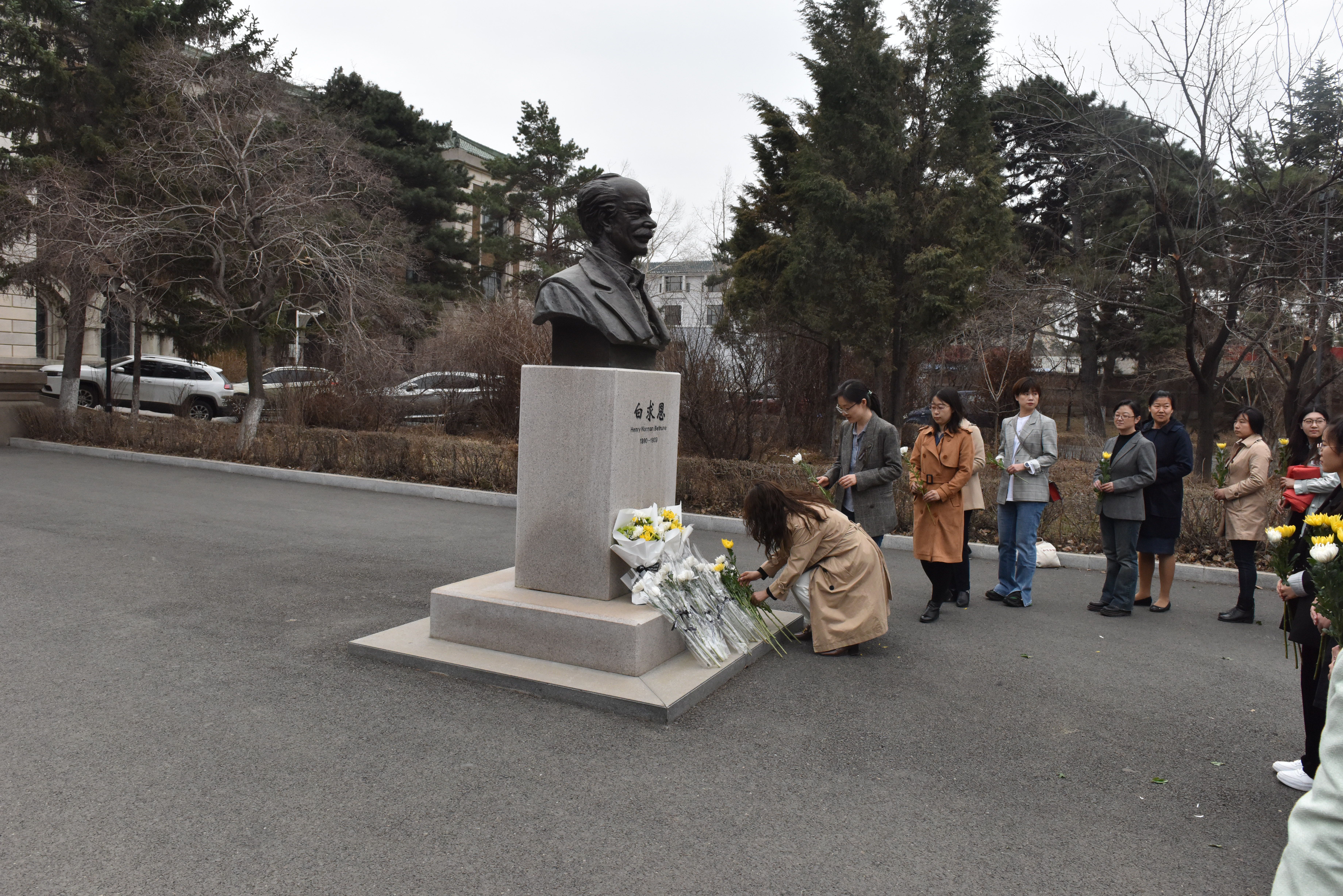 全体教职工党员及学生党员代表,开展“缅怀先烈事迹,传承白求恩精神”为主题的清明节主题党日活动。在庄严的白求恩像前,全体党员通过默哀、敬献鲜花的方式,表达了对国际共产主义战士白求恩同志的哀思。