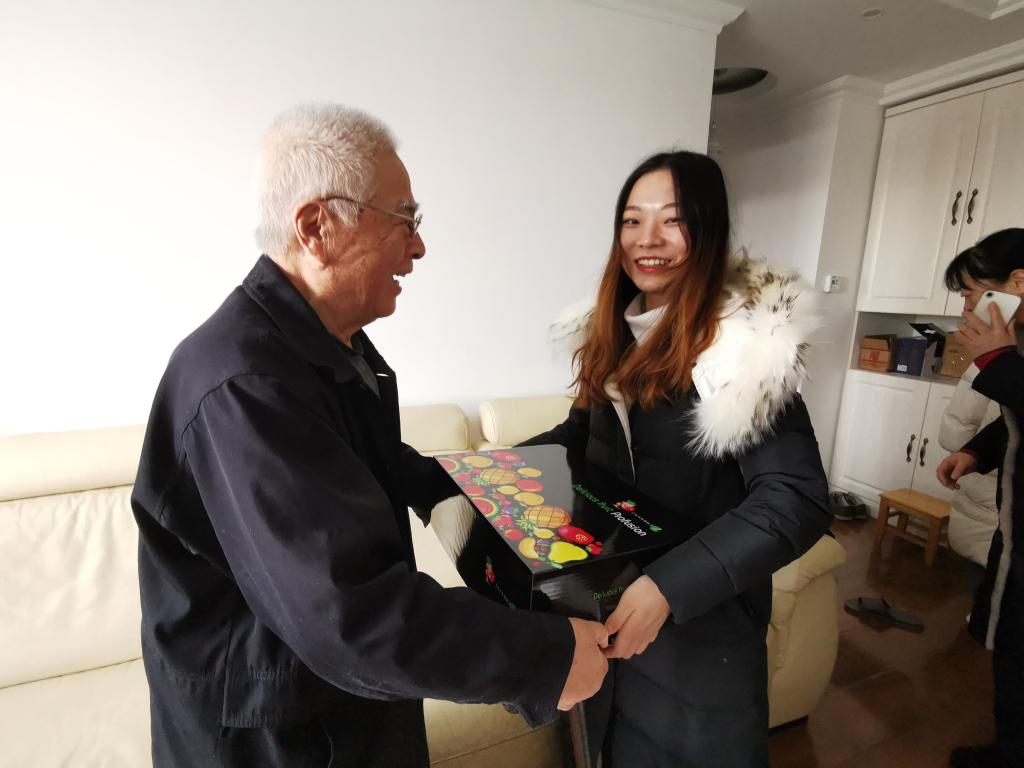学生党员向两位护理前辈敬献鲜花,祝贺前辈母亲节、护士节快乐!