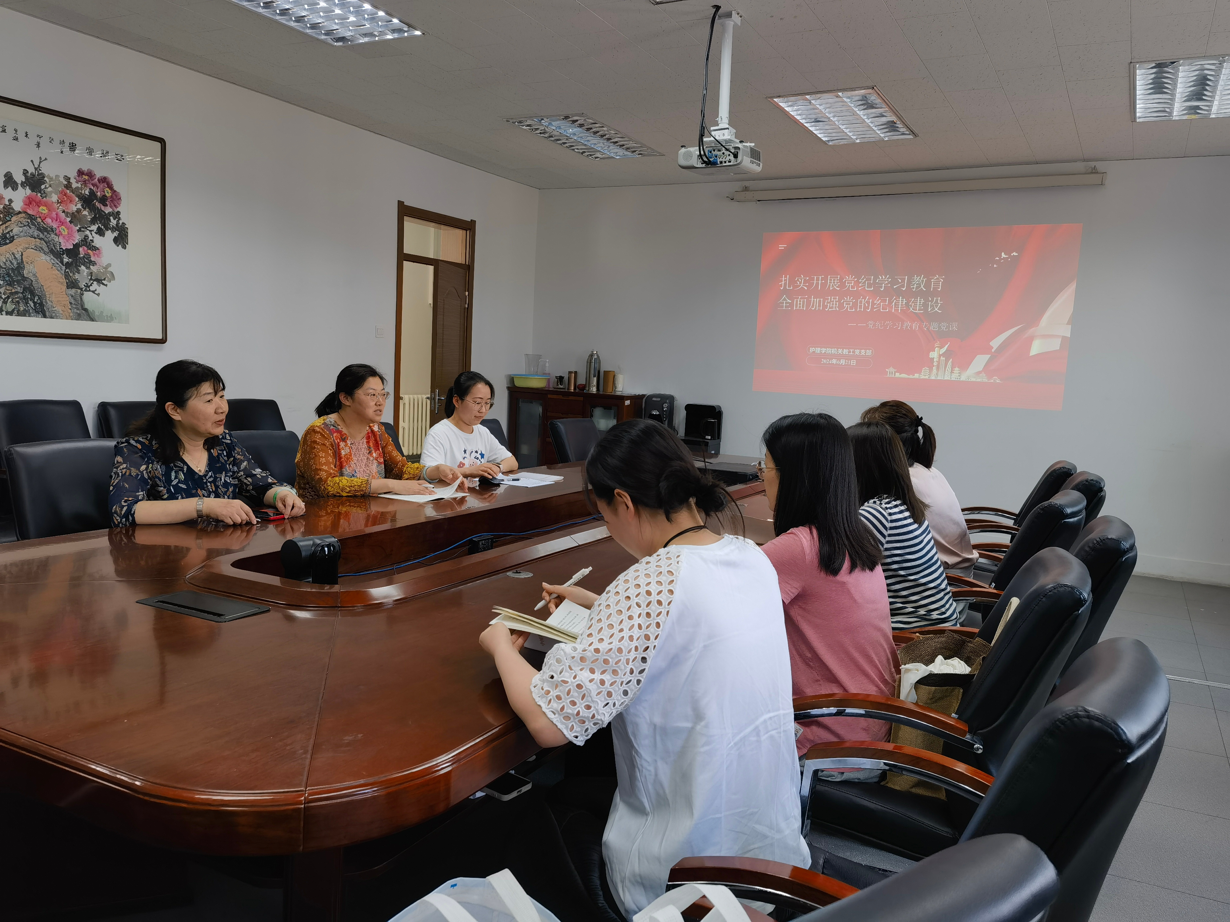 机关教工党支部在学院三楼会议室开展党纪学习教育专题党课。