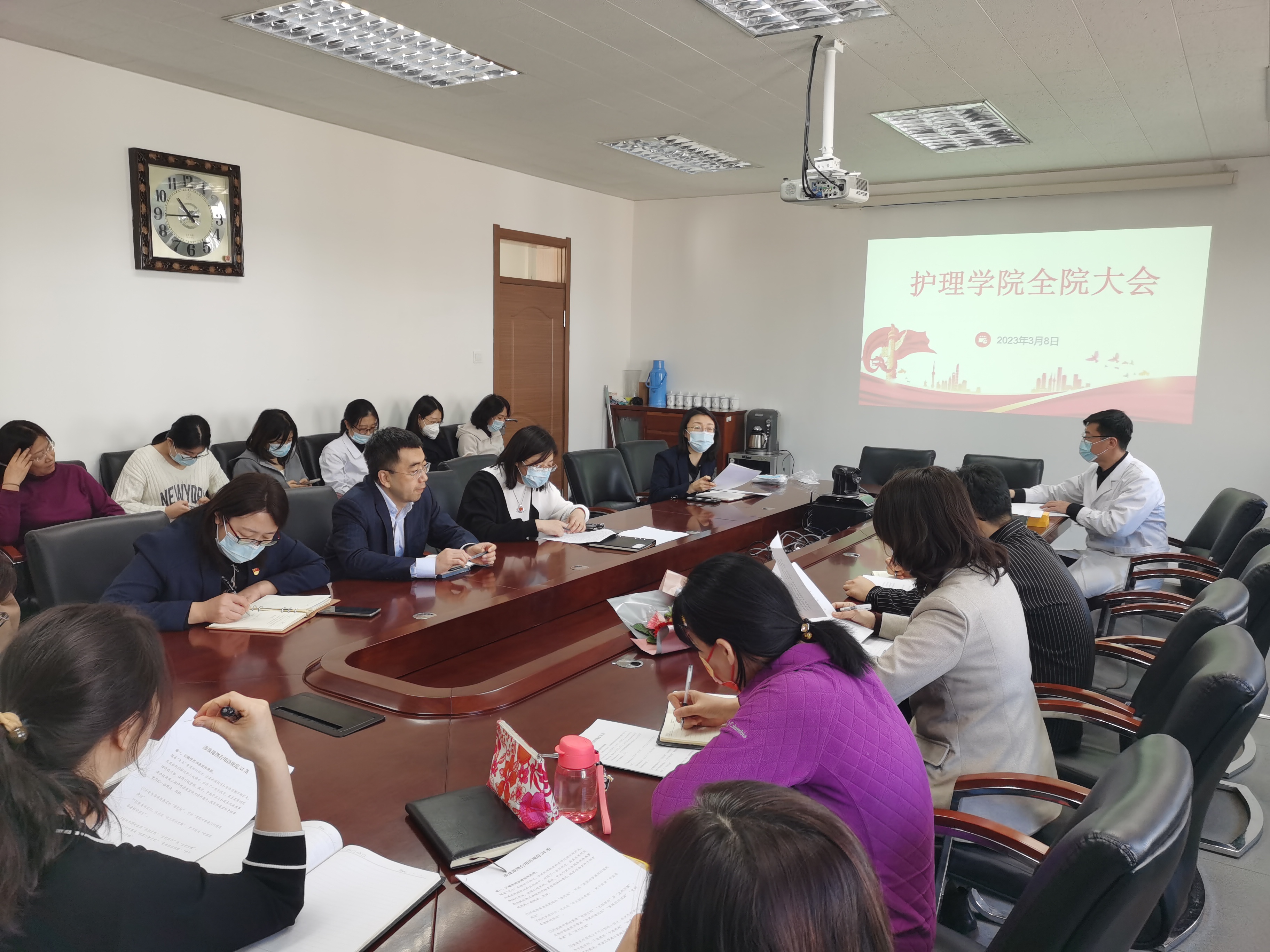 在三楼会议室召开2023年第二次全院教职工大会,全体教职工参加会议,会议由院党委书记韩月波主持。