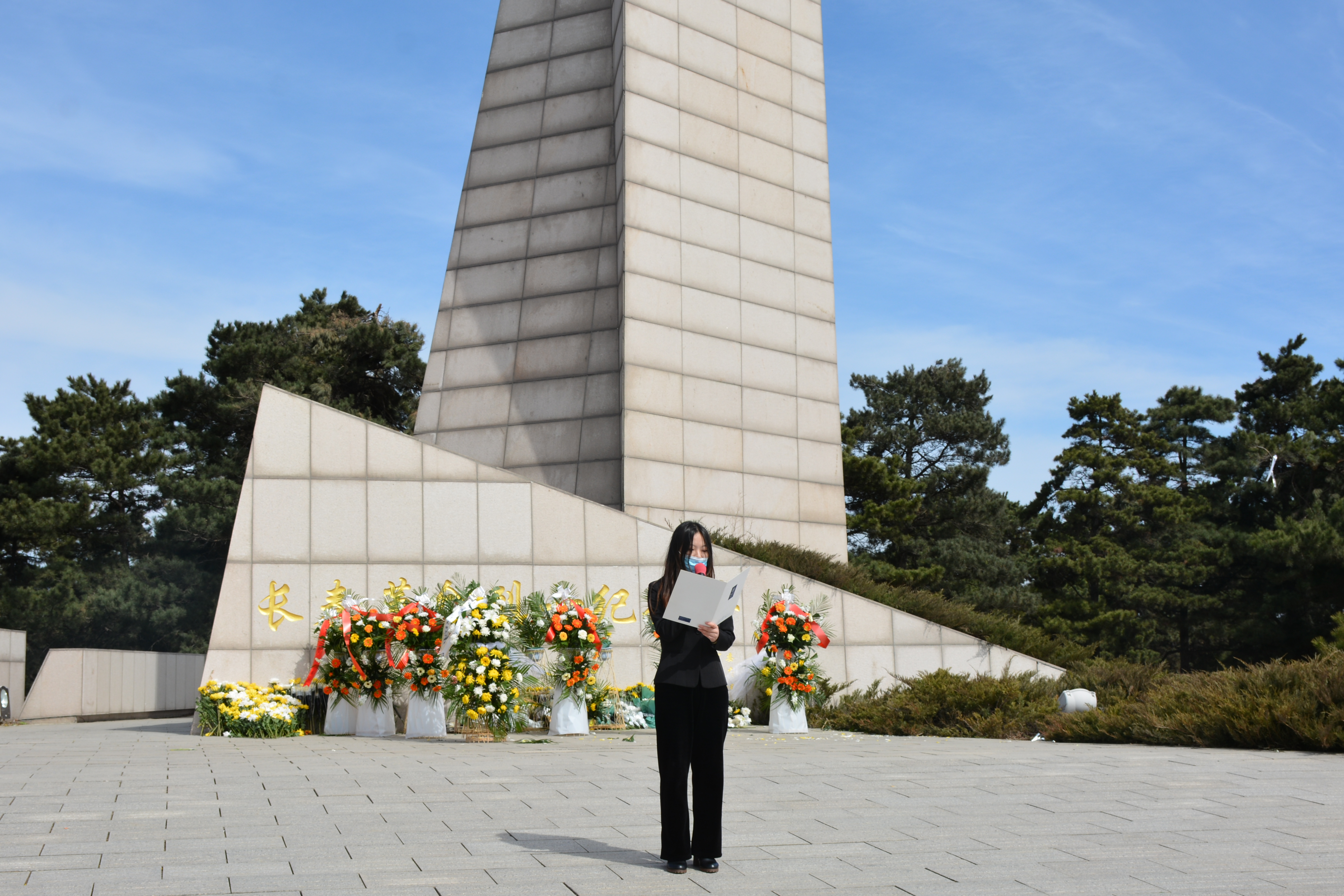本科生第一党支部代表姜玥同学代表全体学生表达了祭奠英烈和致敬先贤的感悟,在她深情激昂的演讲下,在场的同学们的思绪又回到了那段艰难峥嵘的岁月:祖国危难时,无数爱国志士挺身而出,甘洒一腔热血。每个人都应该把这份被鲜血染红的骄傲一直传承下去,这不仅是一个民族的血脉,更是一个国家不屈的灵魂。
