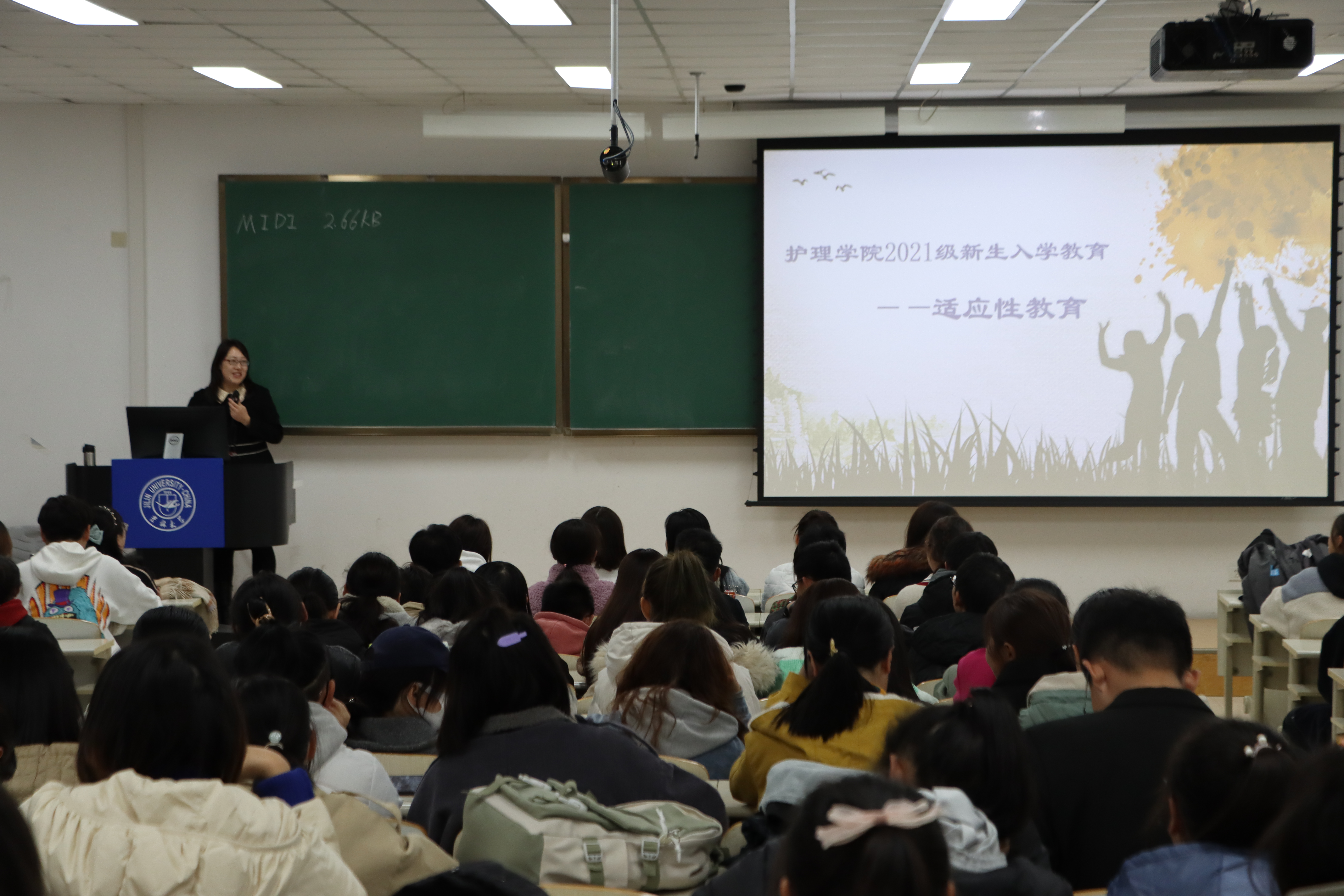 2021级大家庭成员情况开始,让同学们对学院及身边的同学有更直观的了解。随后,葛老师通过大学与高中的区别、如何处理人际关系、我的大学目标等主题入手,为大家讲解如何处理寝室、班级、朋友、恋人等之间的关系,如何自主性的进行学习,如何规划大学四年的学习、生活等进行了细致的阐述,系统性地解答了初入大学的各种疑惑以及对于各种困扰的解决方法。她希望同学们积极调整心态,顺利完成高中到大学的过渡阶段,尽快适应大学生活,做到自信自主、自尊自爱、自立自强,全面提高个人综合素质,努力成为新时代大有作为的新青年。