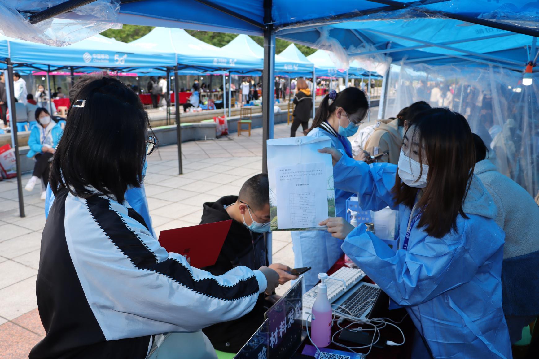 在中心校区五月花广场喜迎2021级新生,热情接待来自全国各地的新同学。