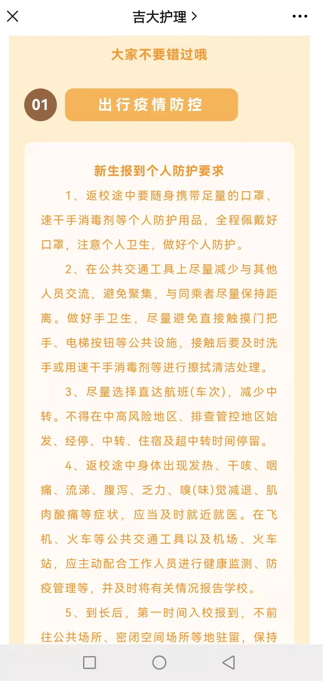 运用新媒体平台开展新生防疫知识宣传和防护指导工作,帮助同学们加强个人防护意识,引导学生正确掌握基本疫情防控措施,确保新生平安来校报到。新生可通过吉大护理公众号新生入学指南系列,全方位了解新生报到的各项准备工作,更加清楚地了解最便捷的报到路线、乘坐校园小巴温馨提示等。除此之外,新生报到的必备材料、报到各项要求也详细地包含在推送中。不仅帮助新生提前做好报到准备工作,还能够帮助新生进一步了解巴卡漫画